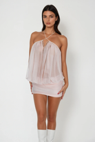 Refined yet daring, the Valeria Ruch Mini Dress is crafted from delicate mesh with a plunging neckline and ruched detailing to flatter the silhouette. A chic statement piece designed for evenings out and upscale occasions.