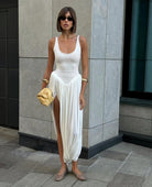 Turn heads with the Alessandra Pleated Backless Slim Maxi Dress — a statement piece that blends elegance with bold modern flair. Designed for confident women who love unique cuts and flowing silhouettes, this dress is perfect for evening events or upscale daywear. The graceful pleats and backless design ensure all eyes are on you with every step.