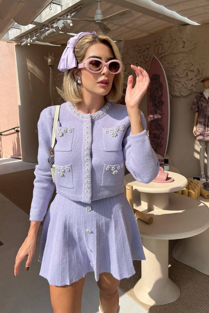 The Beatrix Cardigan Mini Skirt Set is the epitome of modern elegance, perfect for special occasions or elevating your everyday style. Pair with delicate jewellery and heels for a refined, sophisticated look.