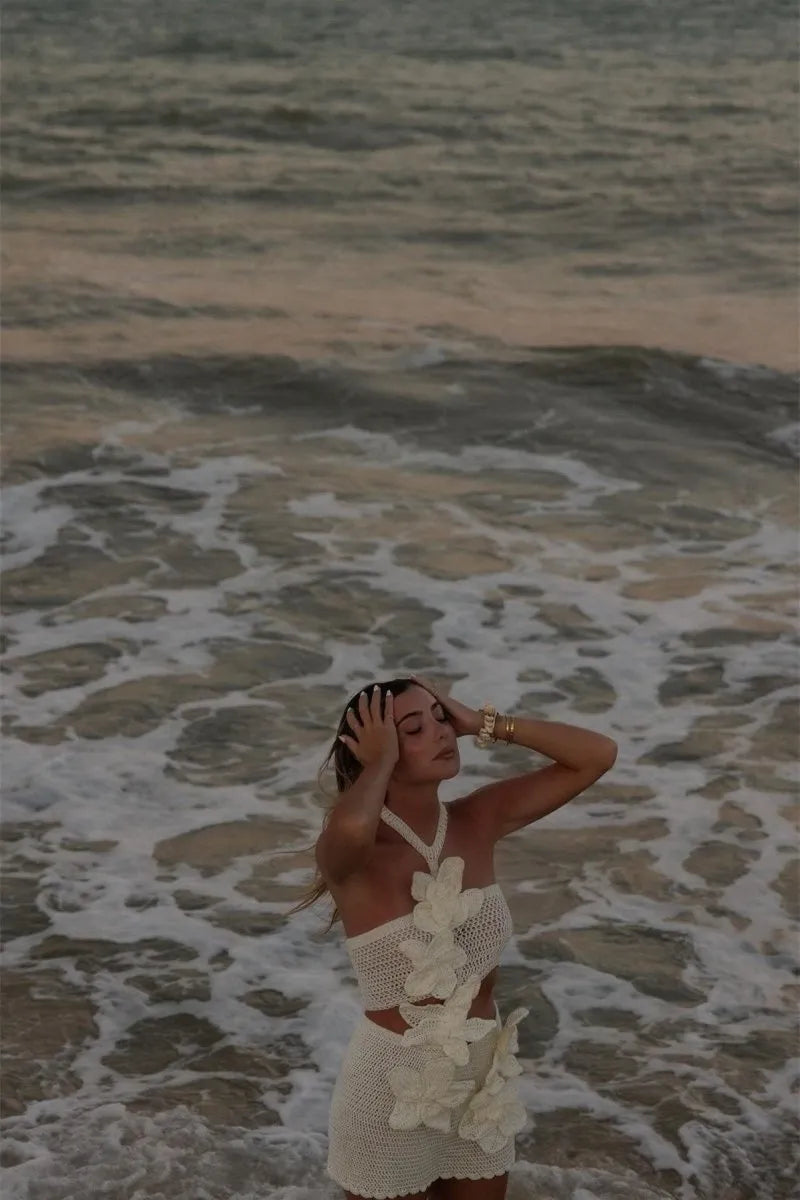Step into effortless elegance with the Sami Halter Knit Floral Mini Dress, a perfect blend of feminine charm and modern style. Featuring delicate floral knit detailing and a flattering halter neckline, this dress is designed to enhance your silhouette while keeping you comfortable. Whether you're heading to a brunch, a summer event, or a night out, the Margaret dress ensures you make a statement.