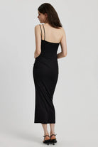 Embrace effortless elegance with the Valli Sleeveless Midi Dress, a timeless piece designed for both sophistication and comfort. Crafted with a soft lining and delicate ruched detailing, this dress flatters your figure while ensuring a flawless fit. The detachable rose brooch adds a charming touch, allowing you to style it your way for any occasion.