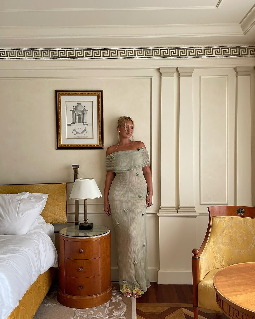 • Elegant Off Shoulder Design: Highlights the neckline and shoulders for a soft, feminine finish.